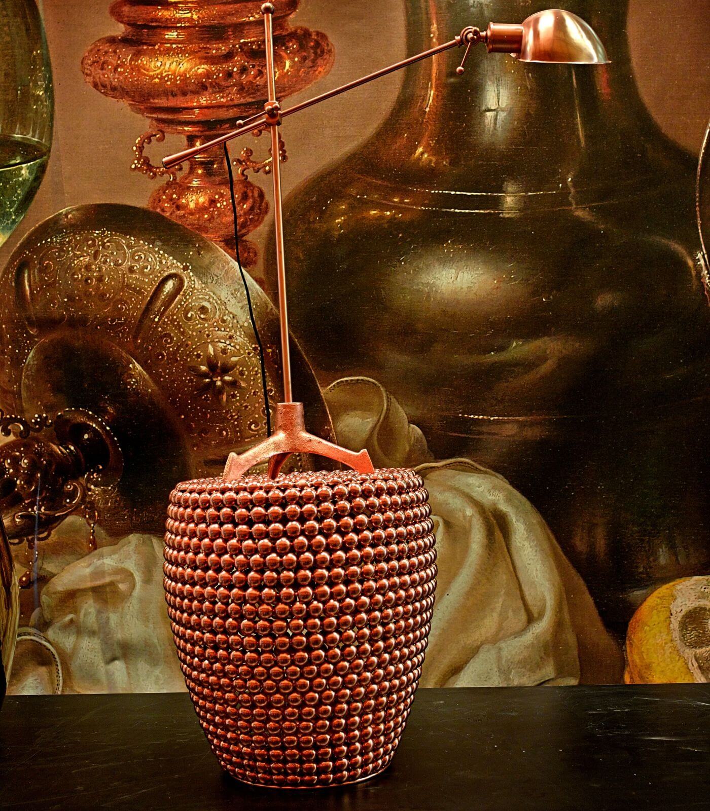 • Matière : Structure en fer avec revêtement cuivre laqué époxy