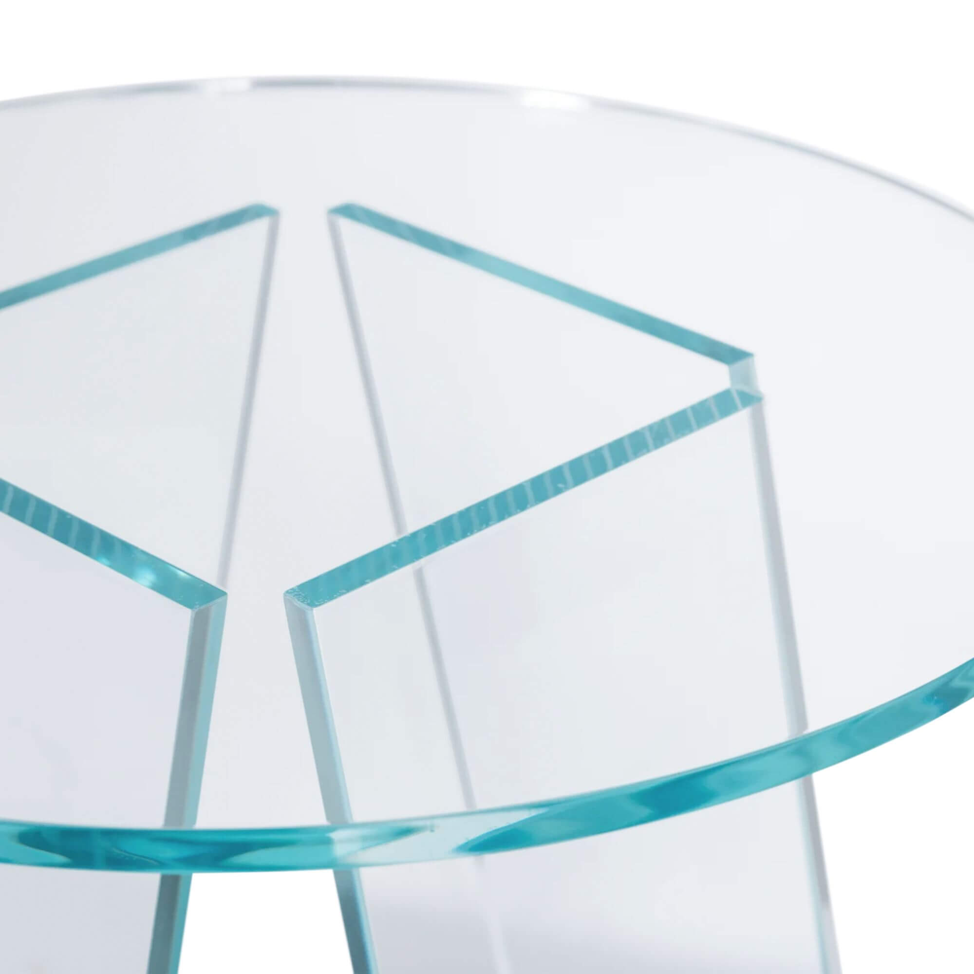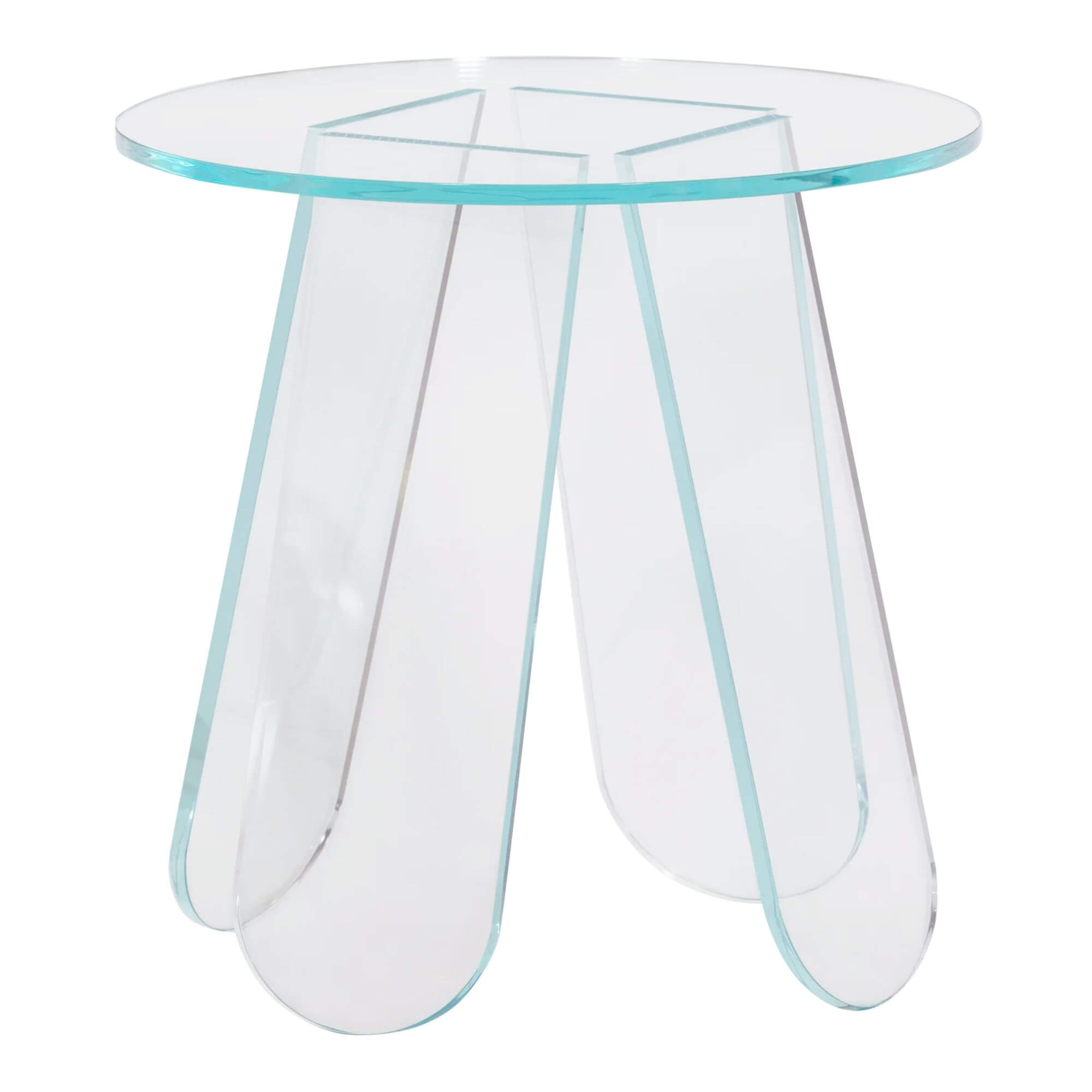 Fabriquée en acrylique effet plexi, elle apporte une touche de légèreté ultra tendance. Sa silhouette ? Un plateau rond tout en finesse perché sur un piètement graphique avec panneaux droits et bas arrondis. Un mix parfait entre originalité et élégance, un peu comme si un tabouret design s’était pris pour une table.