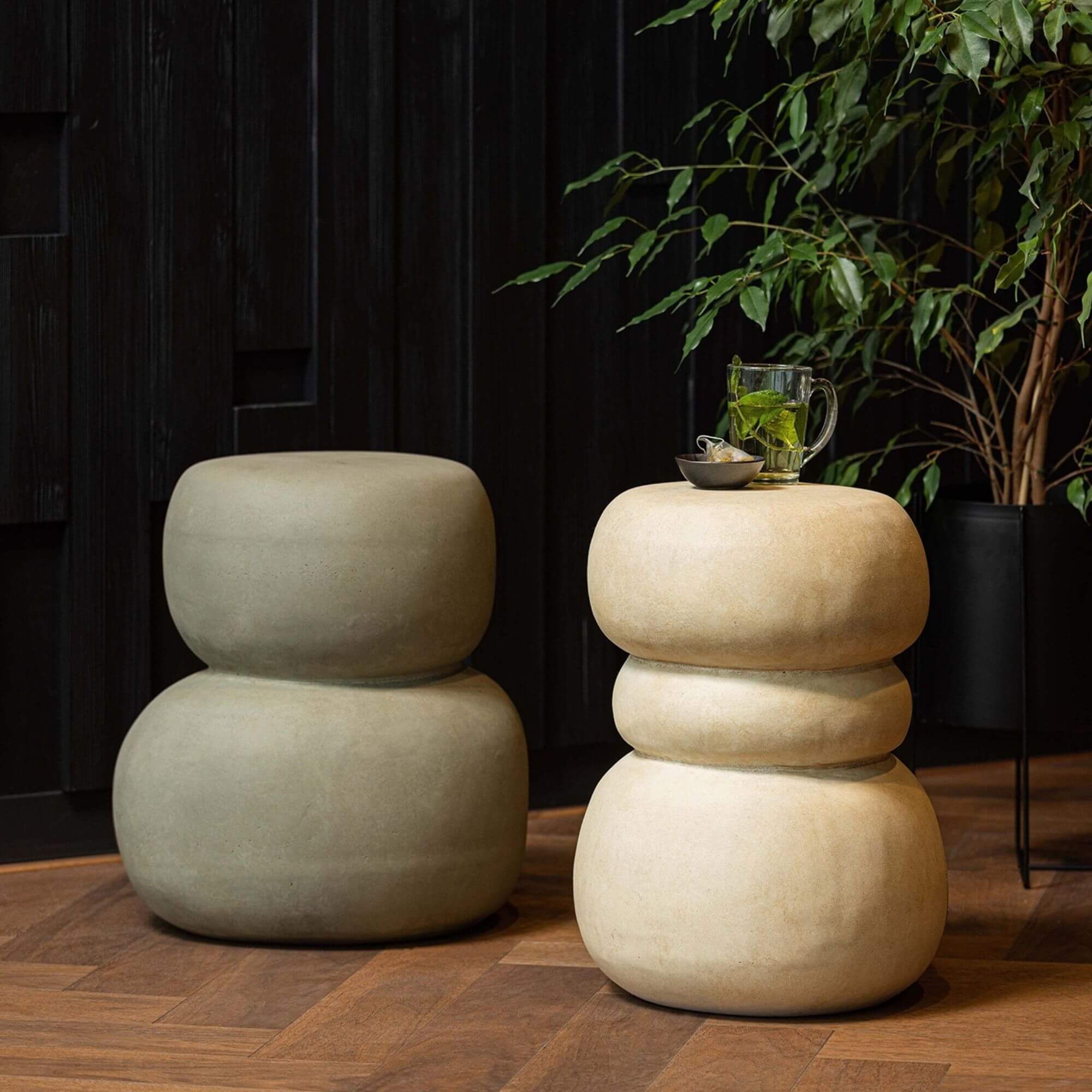 La table d’appoint Oda Aspect Béton sable incarne l’harmonie entre la nature et le design contemporain. Cette table basse séduit par son aspect béton naturel et son design organique empilé, apportant une touche de caractère à tout espace de vie.
