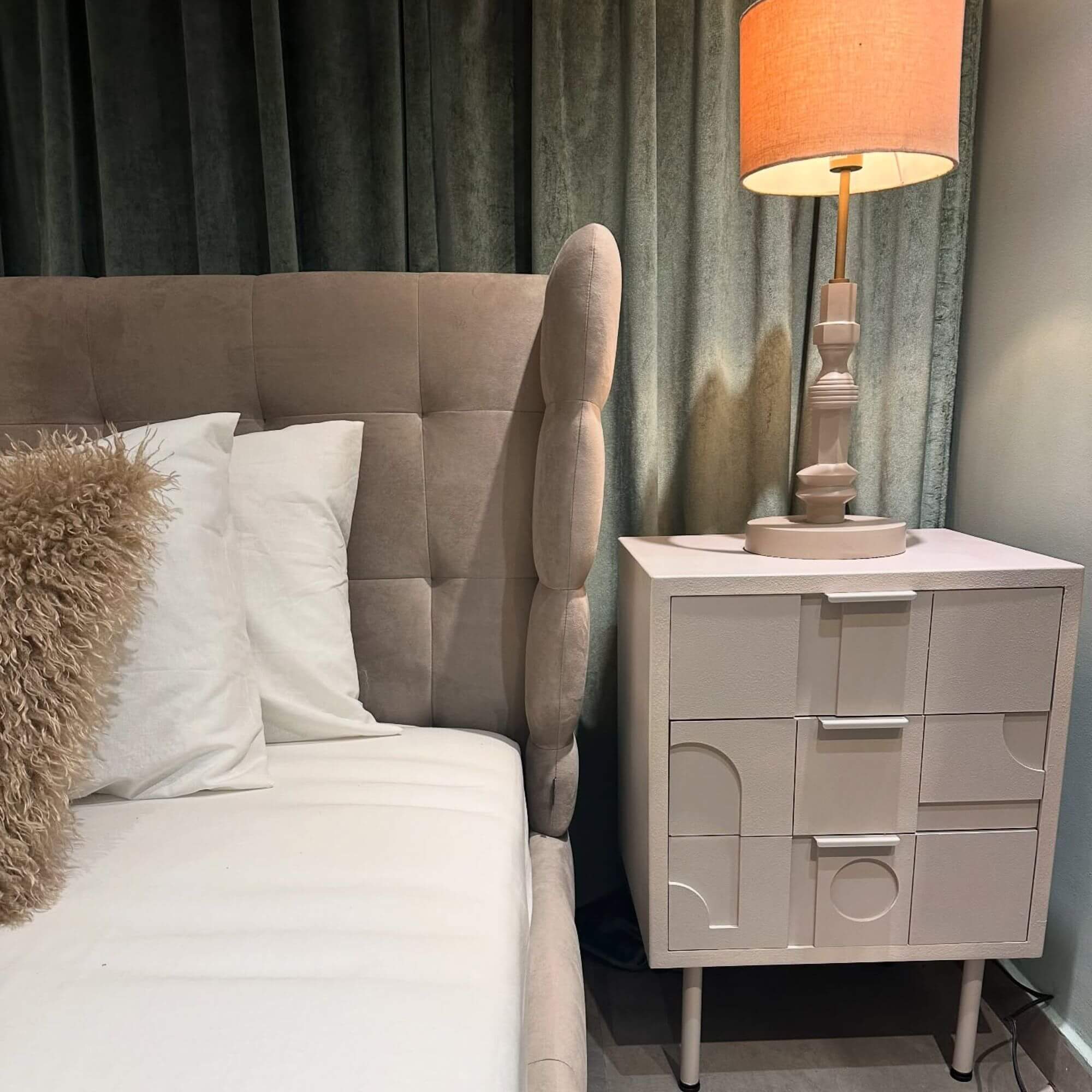 Minimaliste ! Ajoutez une touche de modernité à votre chambre avec la table de chevet Funk. Cette table de nuit offre une combinaison parfaite de style et de praticité. Avec ses pieds en beige et ses compartiments spacieux, elle vous permet de ranger vos essentiels tout en décorant votre espace. Une solution de rangement idéale pour un intérieur contemporain. Grand coup de coeur !