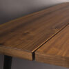 Matières: Plateau recouvert d’un placage en bois de noyer massif / pieds en acier.