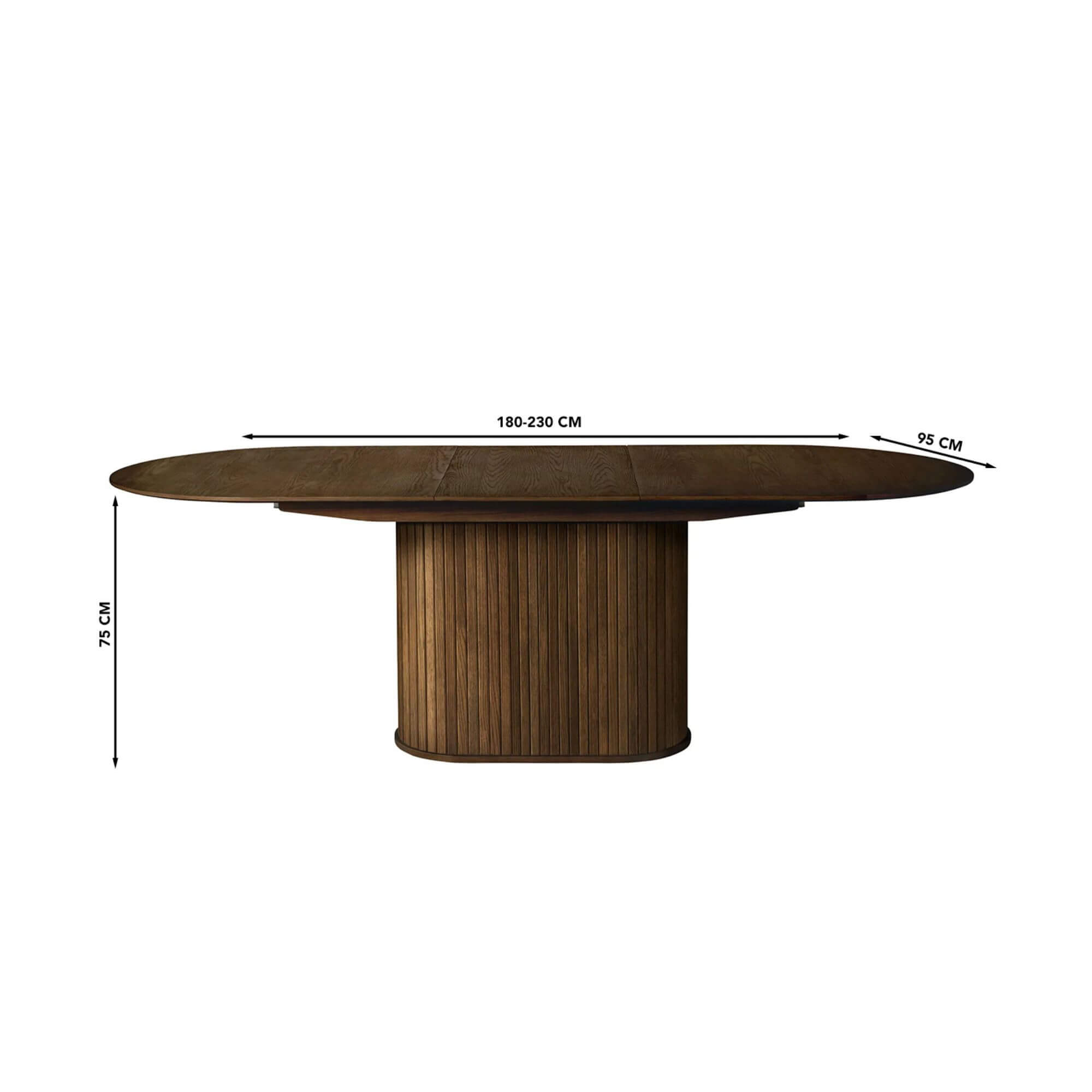 Table à manger Nola ovale extensible en chêne fumé – 180/230 × 95 × 75 cm