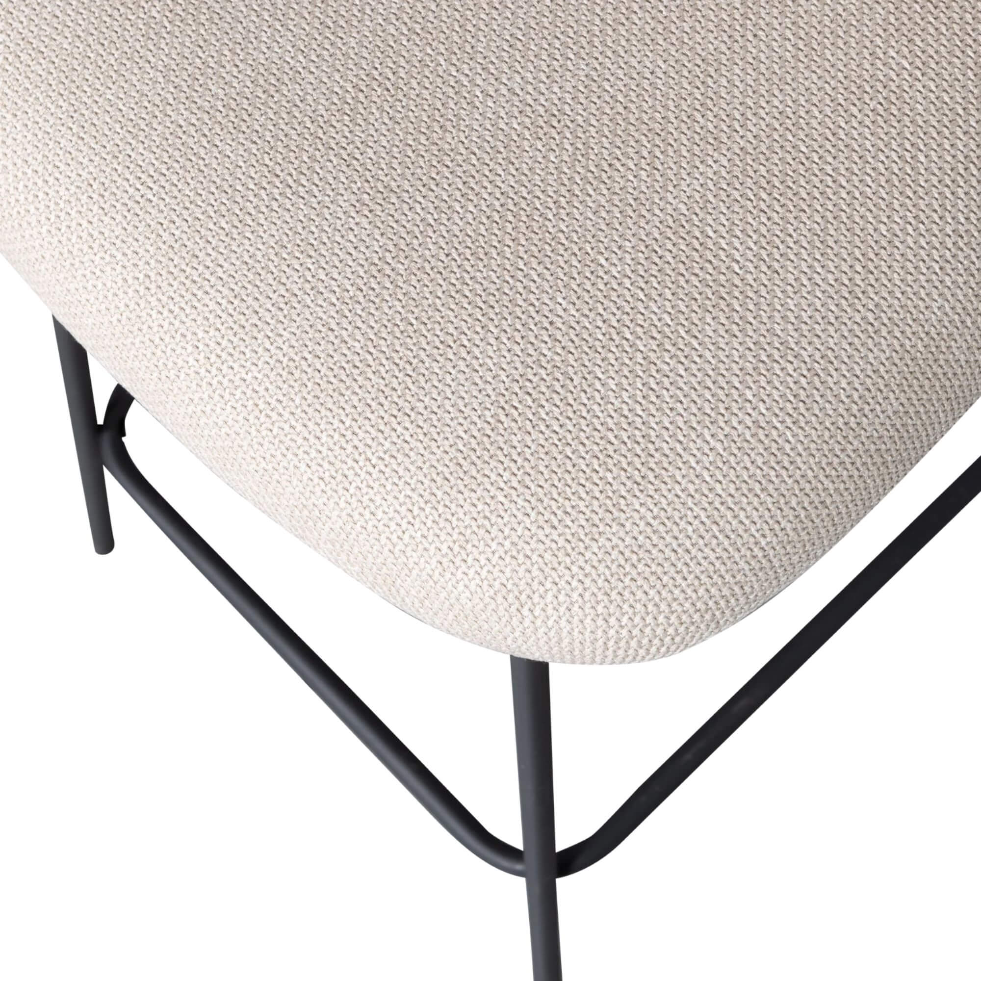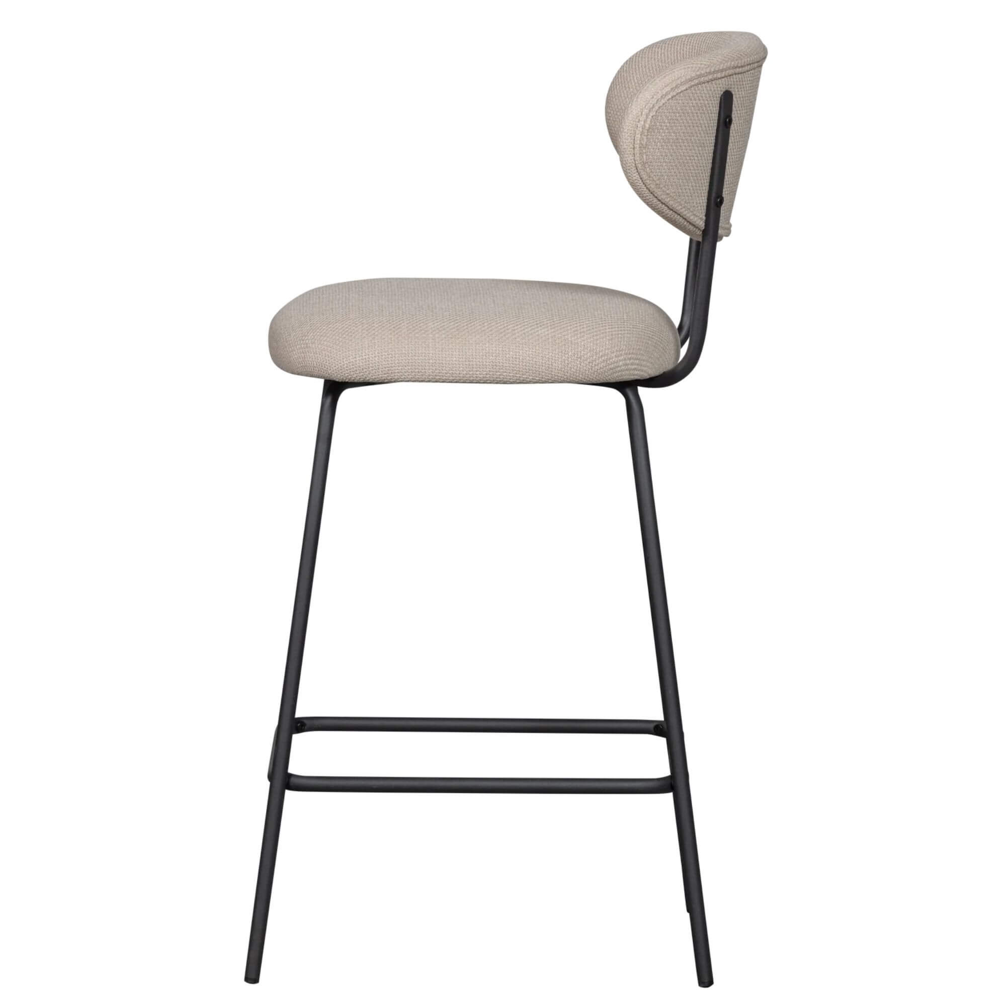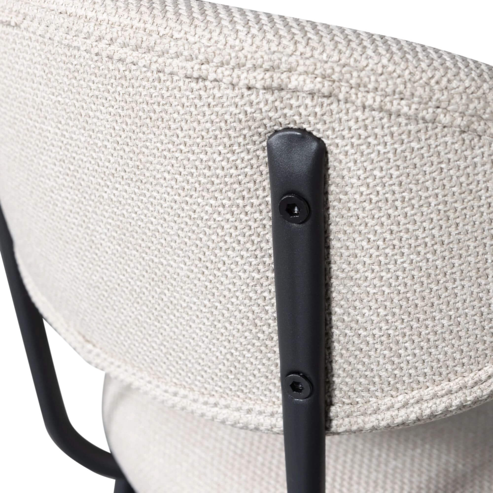 Ces assises au look contemporain jouent la carte de la simplicité bien pensée : dossier arrondi enveloppant, tissu texturé tout doux, et piètement fin en métal avec repose-pieds intégré. L’élégance discrète, version tabouret.