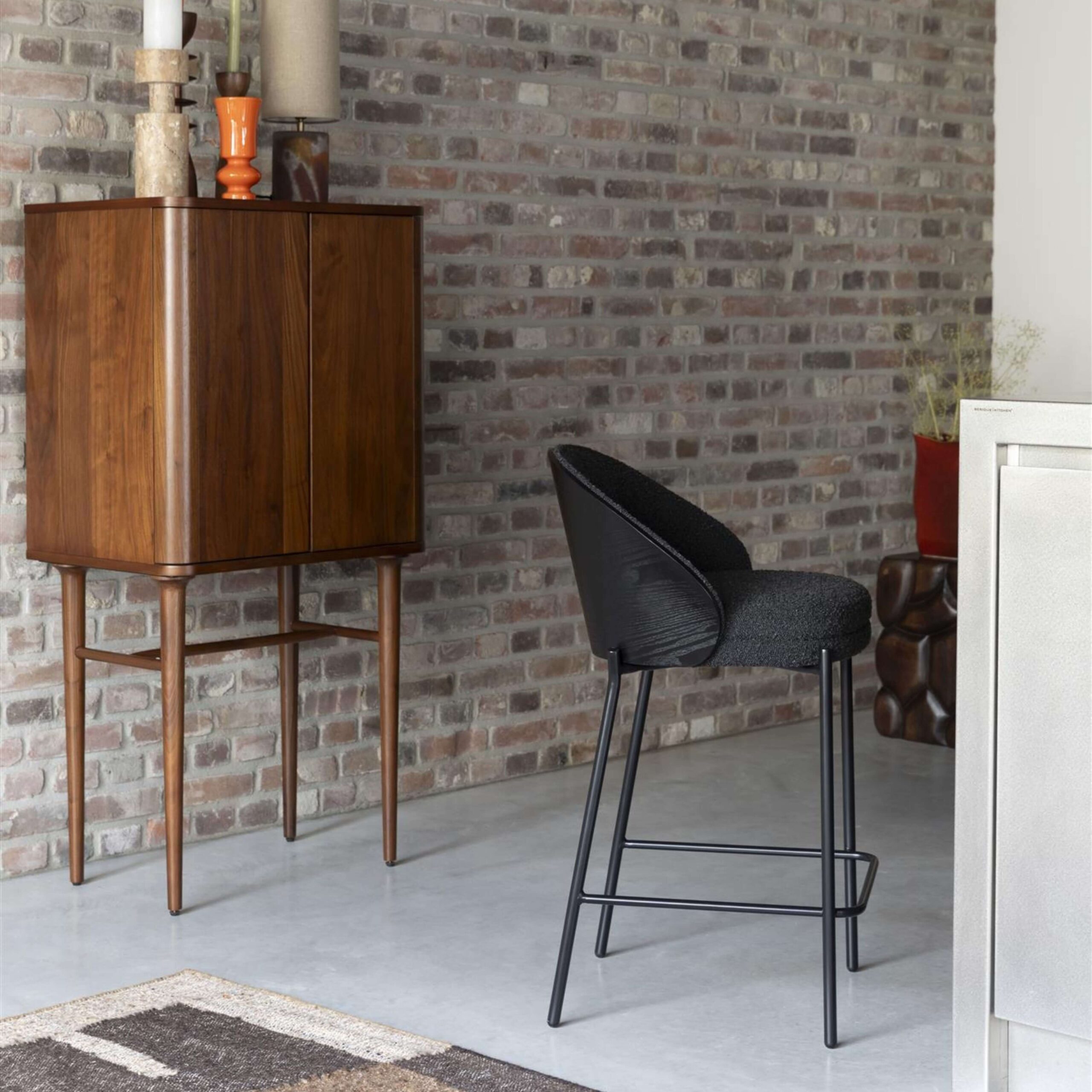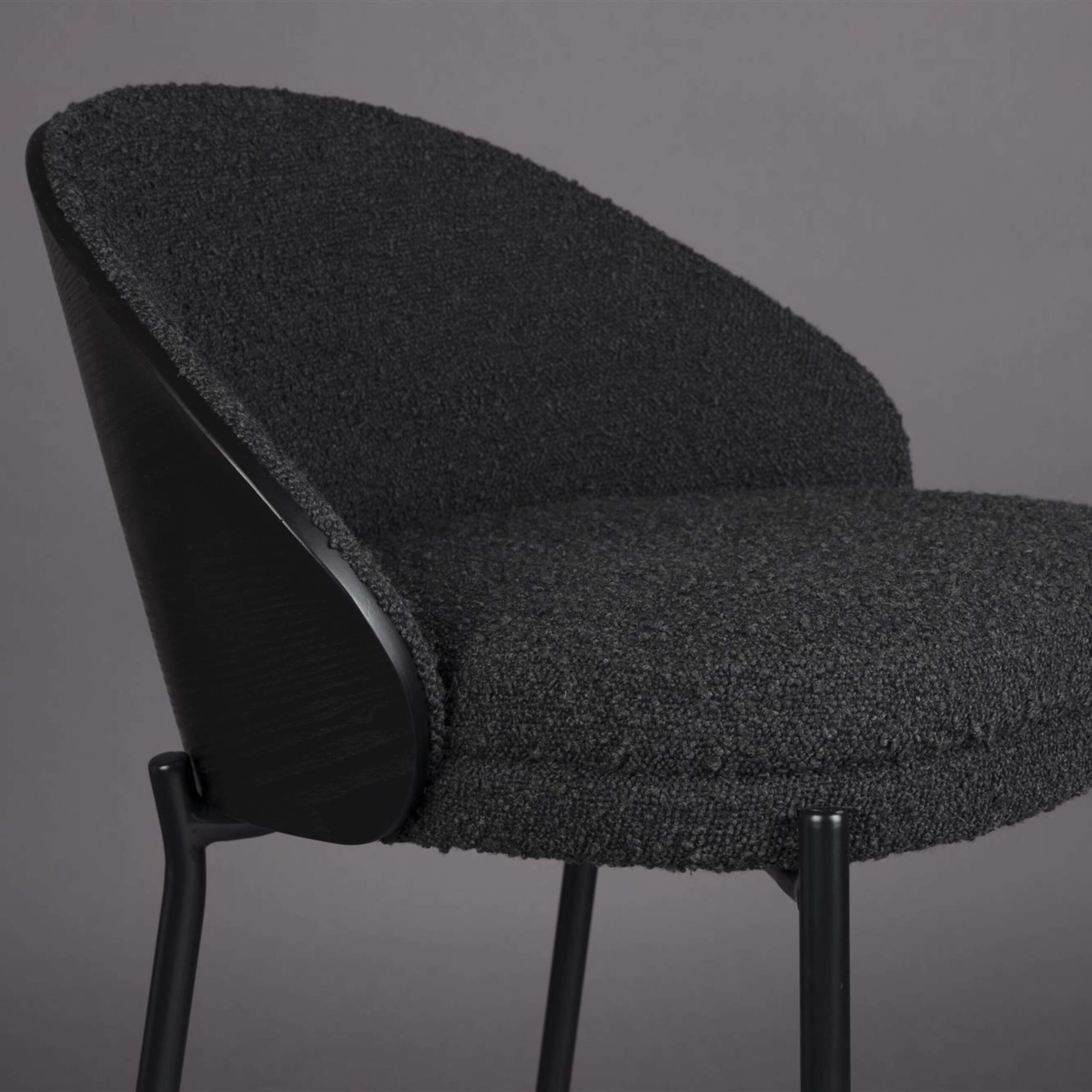 Avec son dossier en bois courbé d’un noir profond et son assise en bouclé noir, il respire la qualité jusque dans les moindres détails. Son look évoque les années 50 et 60, tout en restant parfaitement dans l’air du temps grâce à ses pieds fins en métal noir.