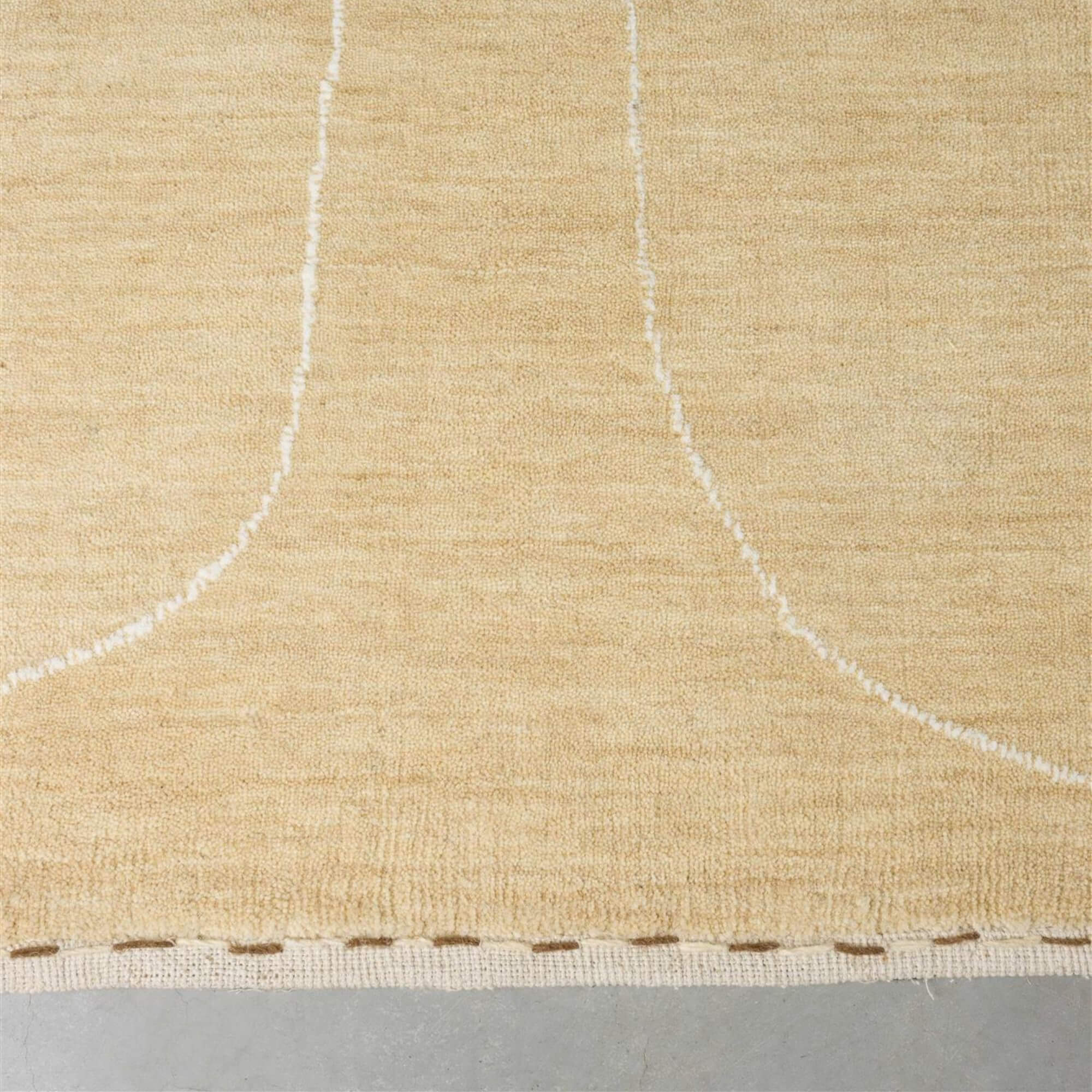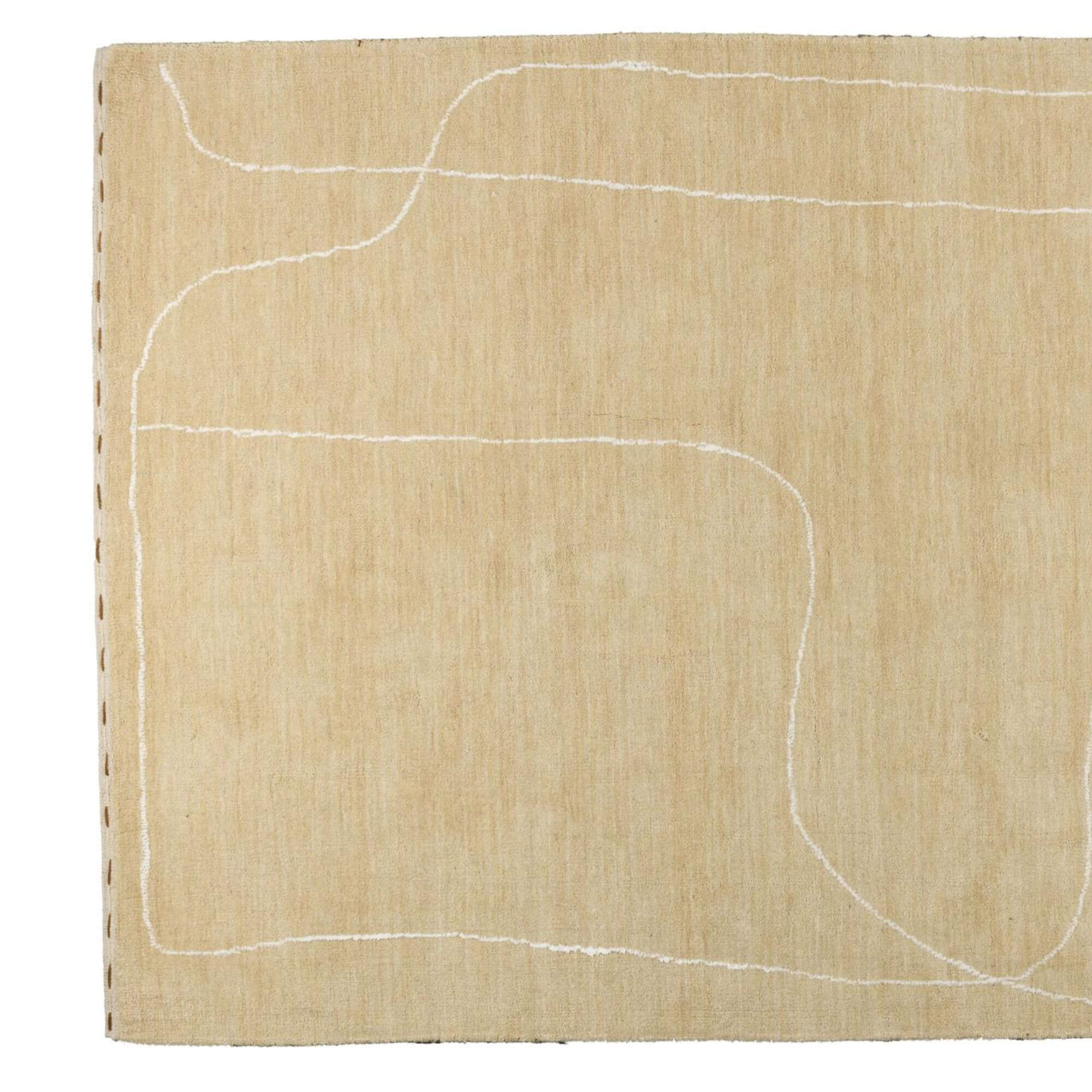 On comprend tout de suite pourquoi ce tapis porte le nom de Doodle. Sa ligne ondulée évoque ces petits gribouillages qu’on trace machinalement en rêvassant ou pendant une réunion un peu trop longue. Un détail ludique qui lui donne beaucoup de personnalité, renforcé par son bord délicatement cousu pour une touche encore plus charmante.