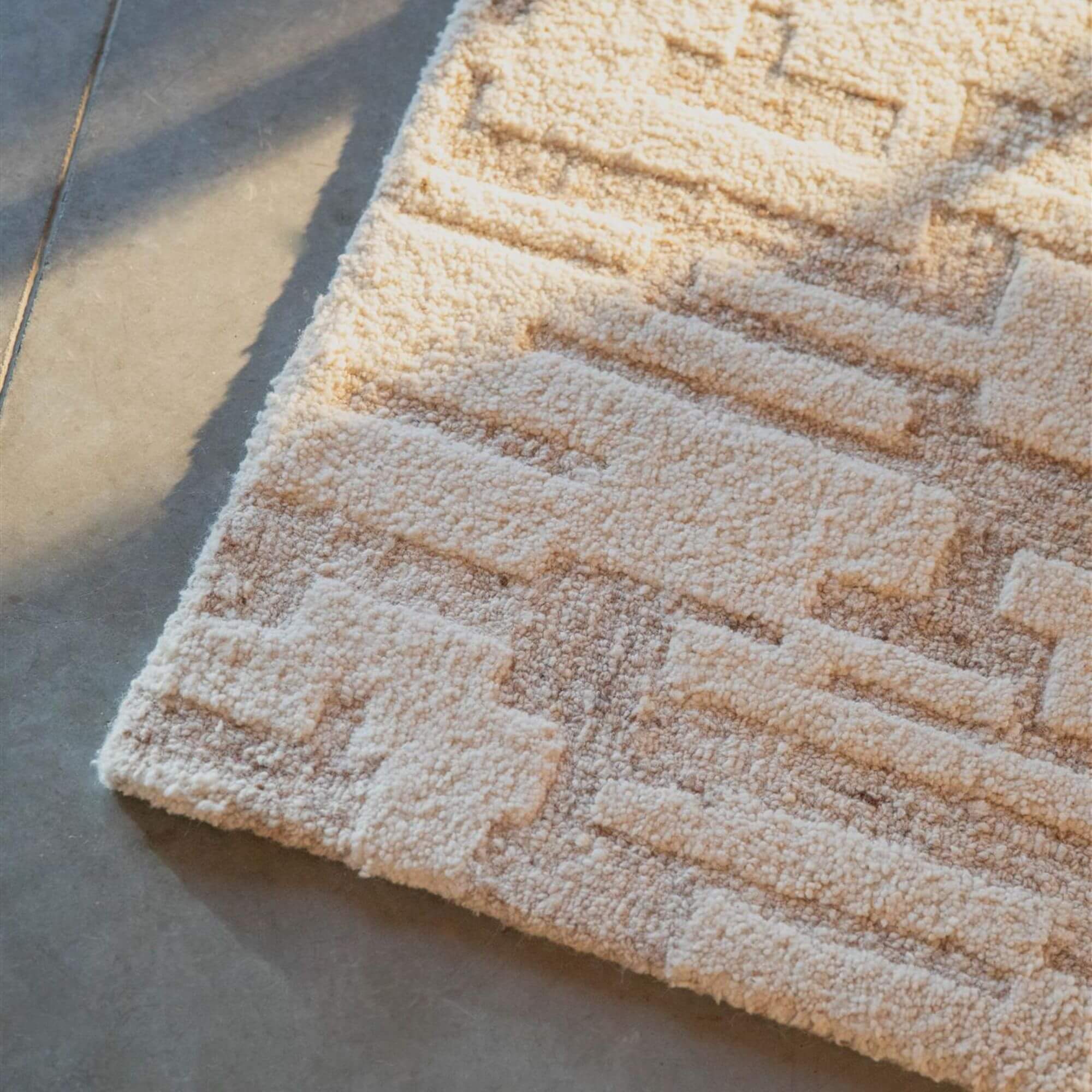Avec sa palette beige tout en subtilité, le tapis Hills joue avec un motif de rayures et de blocs pour créer un visuel à la fois doux et graphique. Tissé à la main, il révèle un joli relief qui apporte de la profondeur et du caractère, tout en restant facile à intégrer dans n’importe quel intérieur.