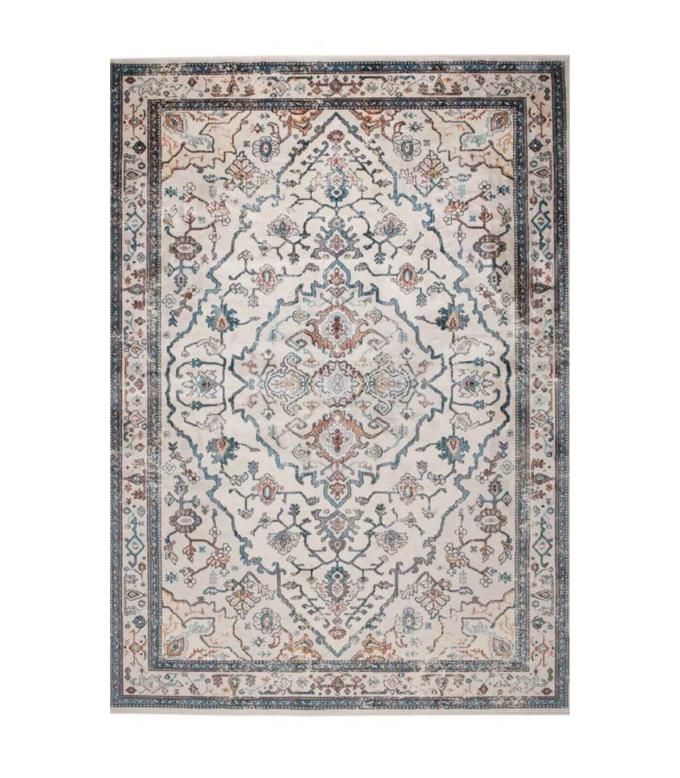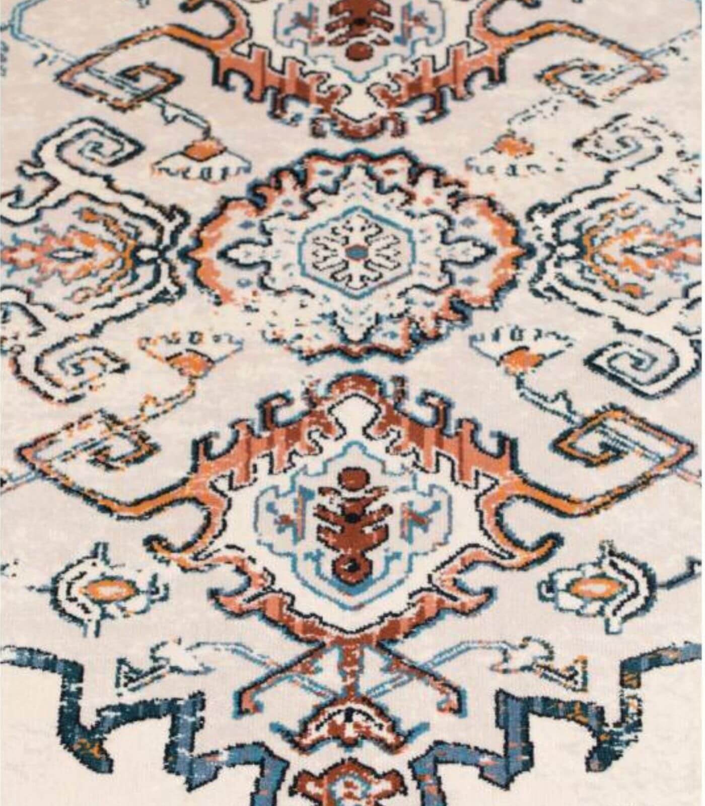 Observez ce tapis aux motifs orientaux et floraux décoré d’un effet vieilli; comme il serait beau dans votre salon, chambre ou bureau ! Ses motifs et ses coloris donneront un côté vintage et une ambiance chaleureuse à votre pièce à vivre.