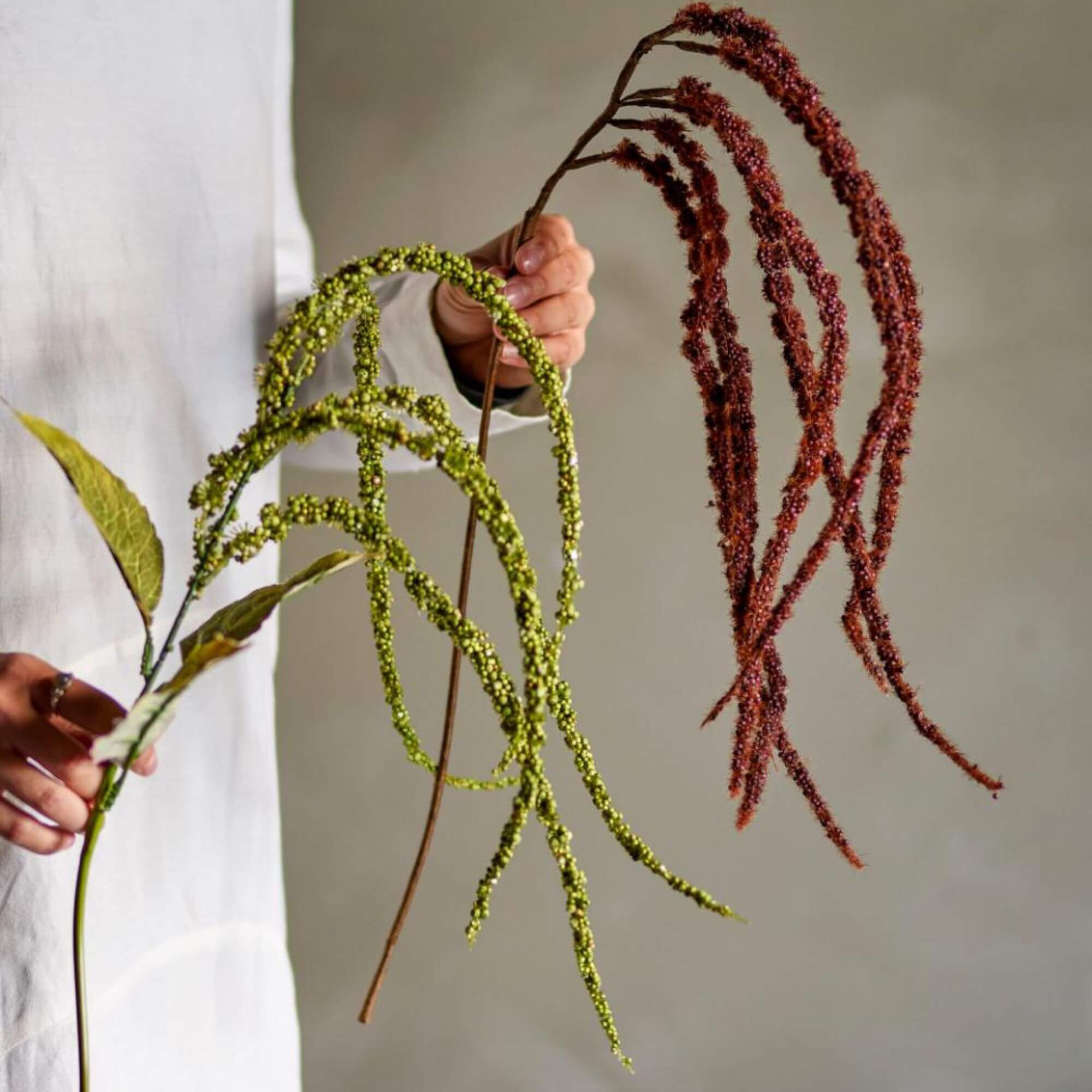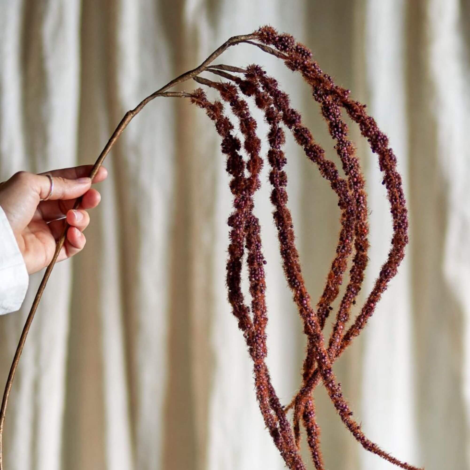 La tige artificielle Foxtail apporte instantanément du pep’s à n’importe quelle pièce grâce à ses petites fleurs brun-rouge qui tombent en cascade — un vrai petit feu d’artifice végétal. Sa silhouette organique et son allure toute douce ajoutent une touche d’élégance à n’importe quel bouquet.