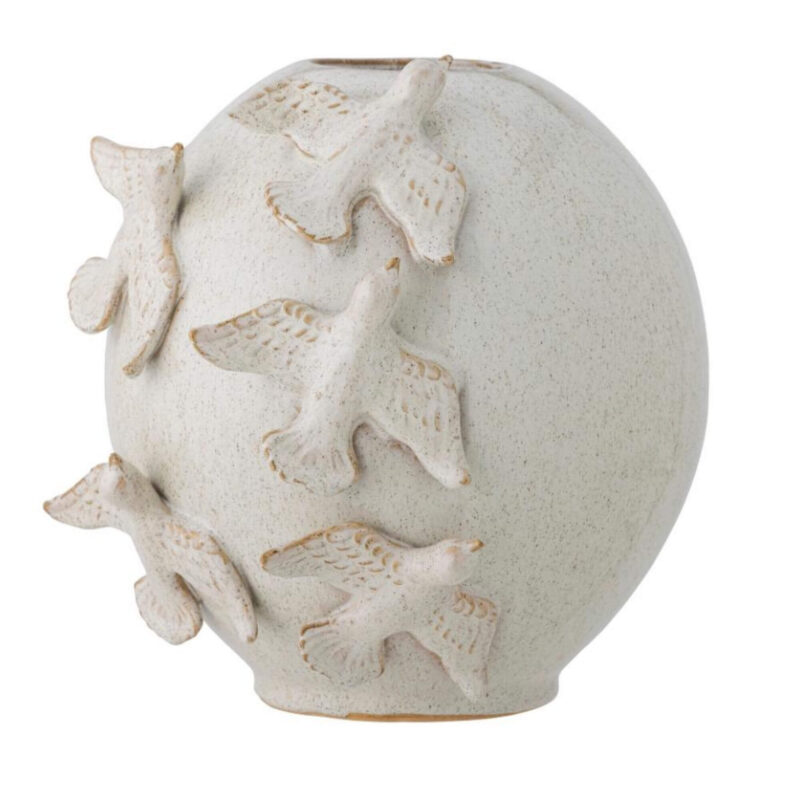 Le vase Abira est une petite merveille faite à la main, orné de jolis oiseaux en plein vol. Fabriqué en grès de couleur claire, il apporte une touche de légèreté à votre déco. Qu’il soit rempli de fleurs ou simplement posé seul, il attire toujours les regards… un peu comme un oiseau qui se poserait en plein milieu de votre salon pour vous épater !