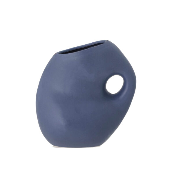 Découvrez un vase qui se démarque par sa forme non conventionnelle, rompant avec les standards classiques. Avec sa silhouette organique et arrondie, son ouverture inclinée et son petit trou sur le côté qui évoque une anse, ce vase arbore un design original et distinctif.