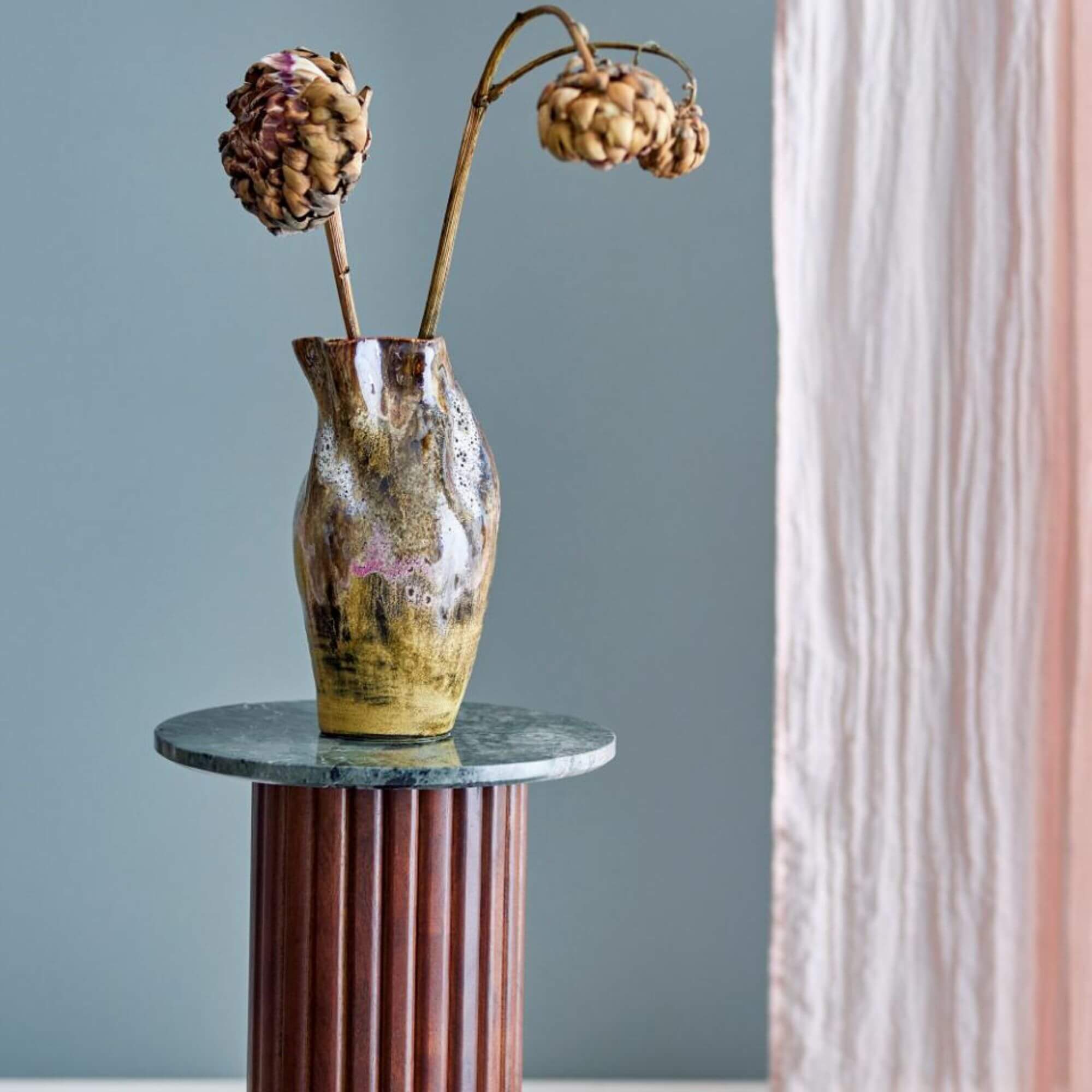 Le vase Benoit arbore une silhouette organique et une glaçure fascinante mêlant jaune, brun et quelques surprises violettes par-ci par-là. Les délicats motifs créés par la glaçure lui donnent un charme naturel et vraiment unique — littéralement, puisque chaque vase sort du four avec sa propre personnalité. En bref : un vase qui ne manque ni de style… ni de caractère !
