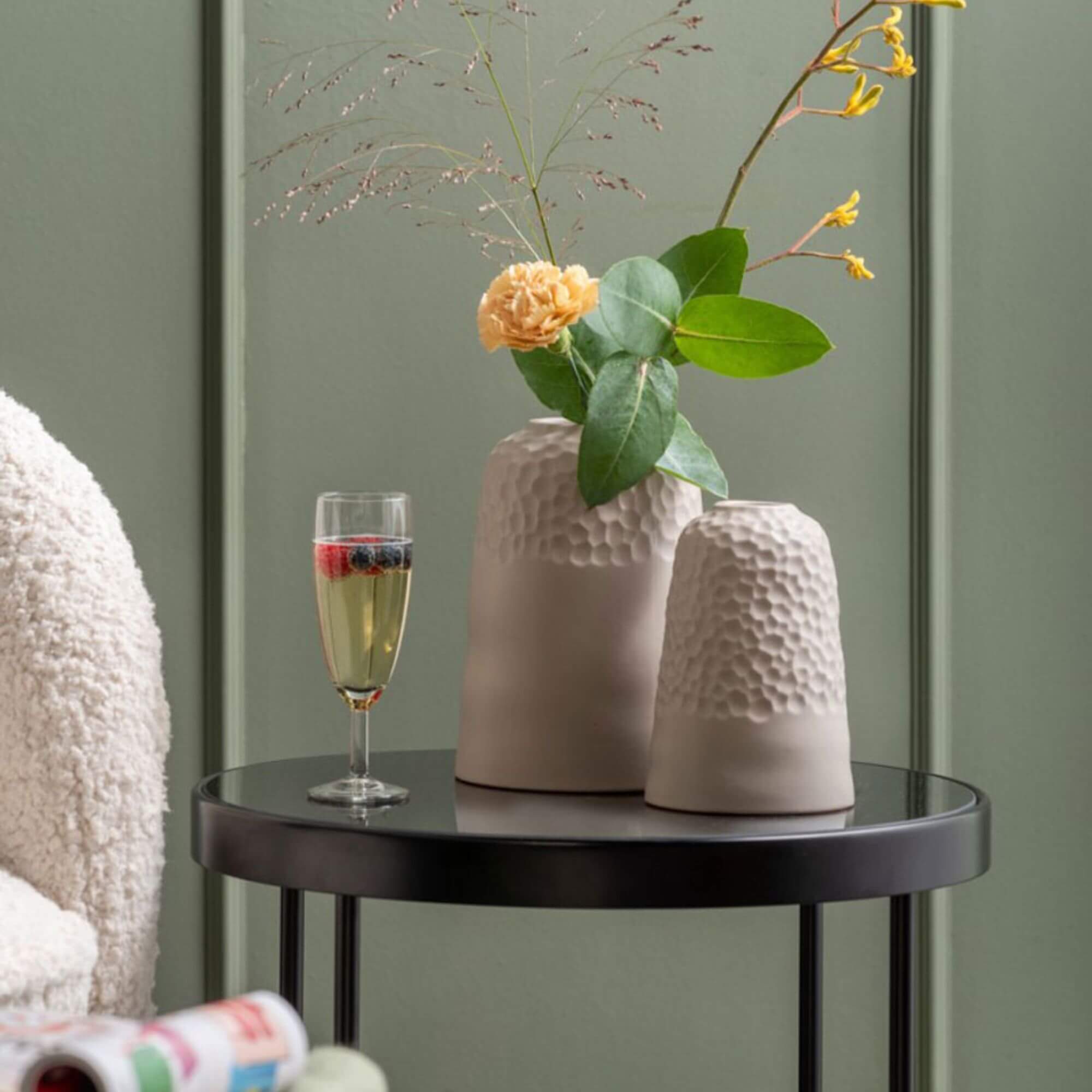 Ce vase contemporain et sculptural offre une solution unique et artistique pour présenter des tiges et des fleurs sélectionnées. Sa forme unique et son aspect texturé font de cette pièce un excellent vase autonome. Parfait pour être exposé sur des étagères et des tables, il est possible de créer une présentation dynamique en le plaçant avec d’autres objets de hauteur et de couleur différentes.
