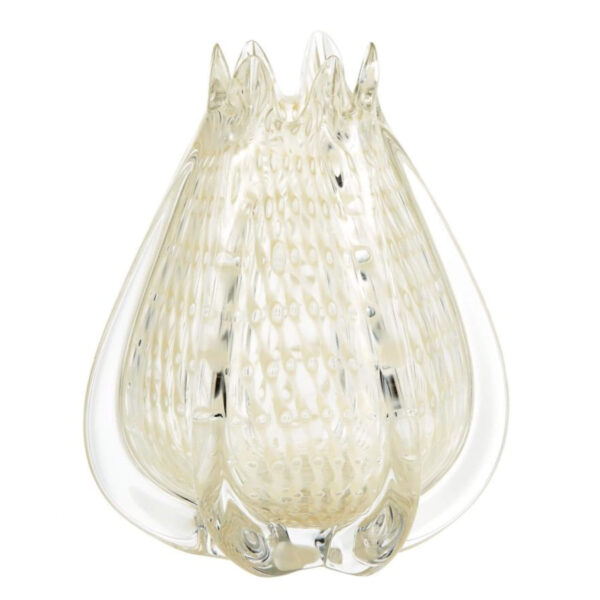 Embellissez votre intérieur avec ce joli vase ! Son ouverture spéciale lui confère un aspect royal et chic. Étant étanche, ce vase offre suffisamment d’espace pour accueillir les plus belles compositions florales. Son verre présente un motif blanc cassé, permettant aux tiges de fleurs de se fondre subtilement dans l’ambiance.