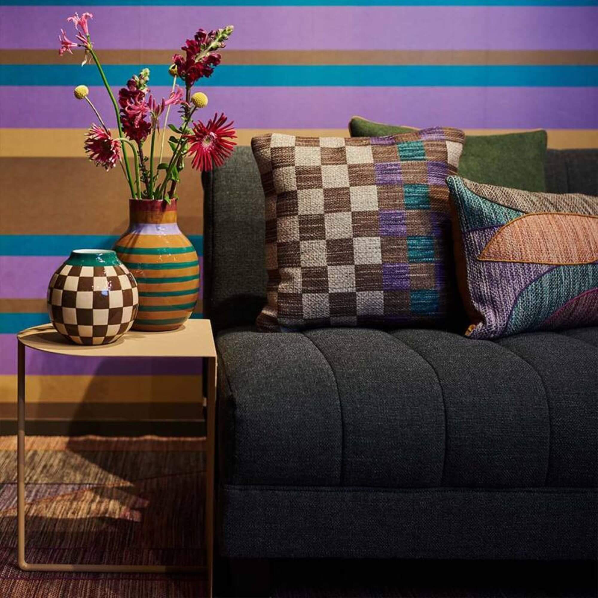 Vase élégant orné de motifs damier, alliant design graphique et modernité. Une pièce audacieuse qui attire tous les regards.