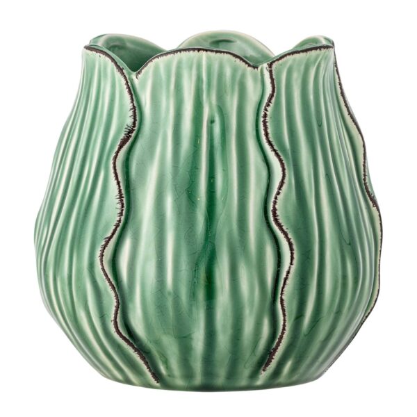 Le Vase Elros apporte une note verte et naturelle à votre intérieur. Son design soigné et sa glaçure captivante lui confèrent un charme décoratif, qu’il soit garni de fleurs ou placé seul. Chaque pièce est unique, des variations de couleur peuvent apparaître en raison des particularités de la glaçure.