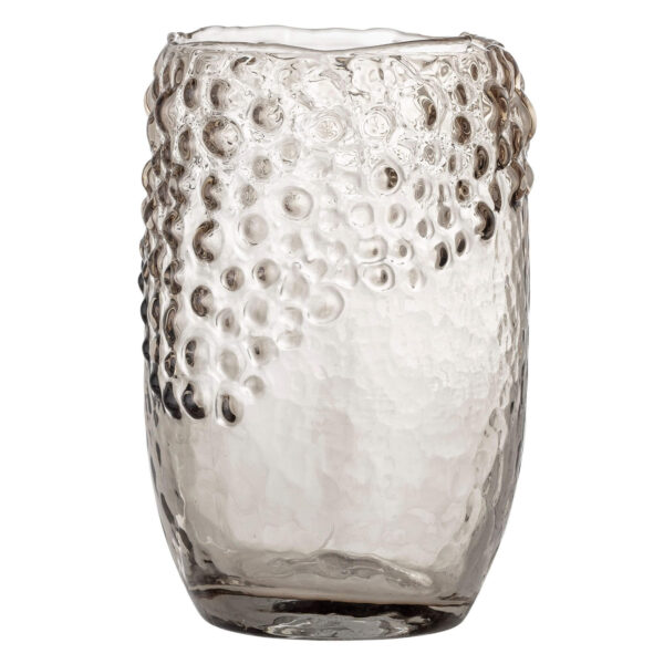 Ce vase en verre brun a un design très particulier. Transparent, il vous permet de voir à travers et de voir la fleur, de la tige aux pétales. Sa forme ressemble à celle d’un verre à eau, sauf que ce vase est deux fois plus grand et a des détails qui le différencient du verre à eau et des autres vases en verre.