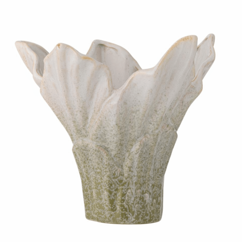 Le vase Erato affiche une silhouette organique et une surface émaillée qui oscille entre des nuances de vert et de blanc, comme un petit paysage naturel qui aurait décidé de s’installer chez vous. Son design sculptural en fait une véritable pièce artistique, du genre à attirer les regards sans même essayer.