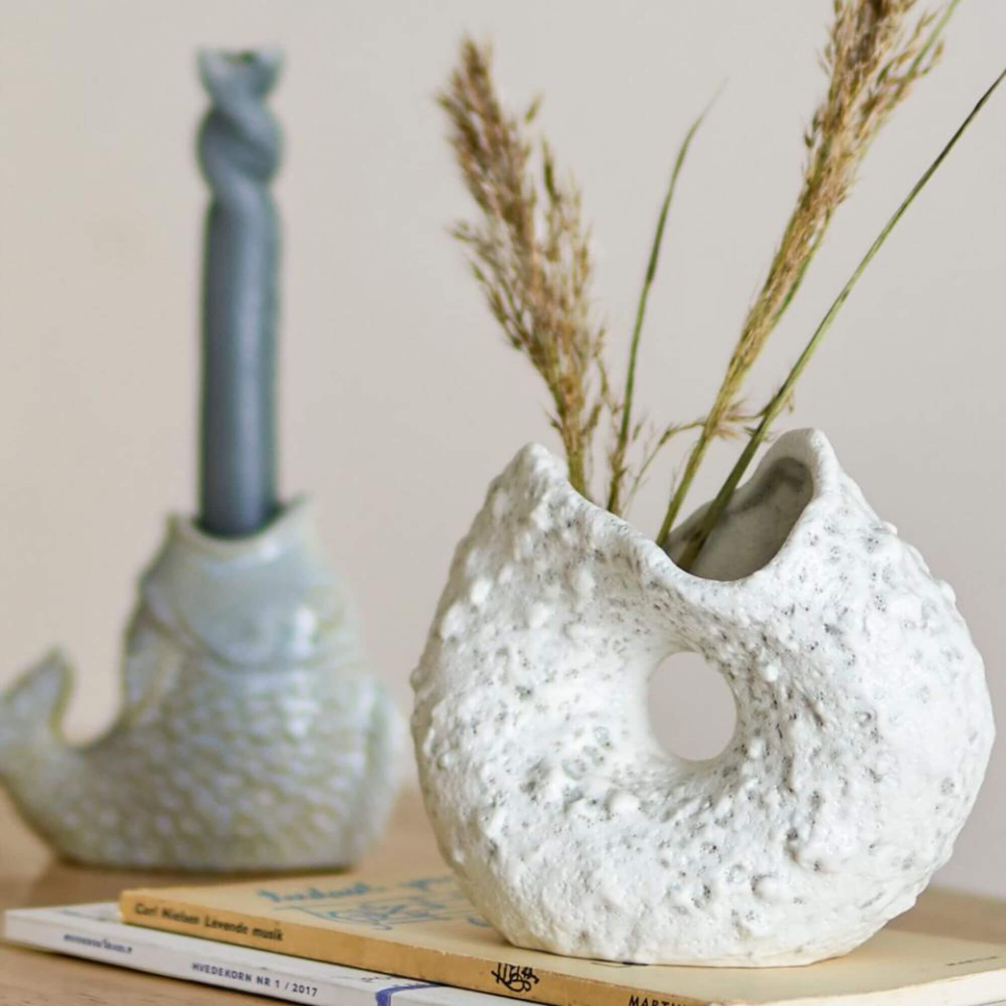 Le vase Fianna est un petit vase en grès au charme unique, inspiré des formes et textures étonnantes du monde marin. Avec son allure brute et organique, il évoque un morceau de corail ou un galet mystérieux tout droit venu du fond de l’océan — sans avoir besoin de se mouiller !
