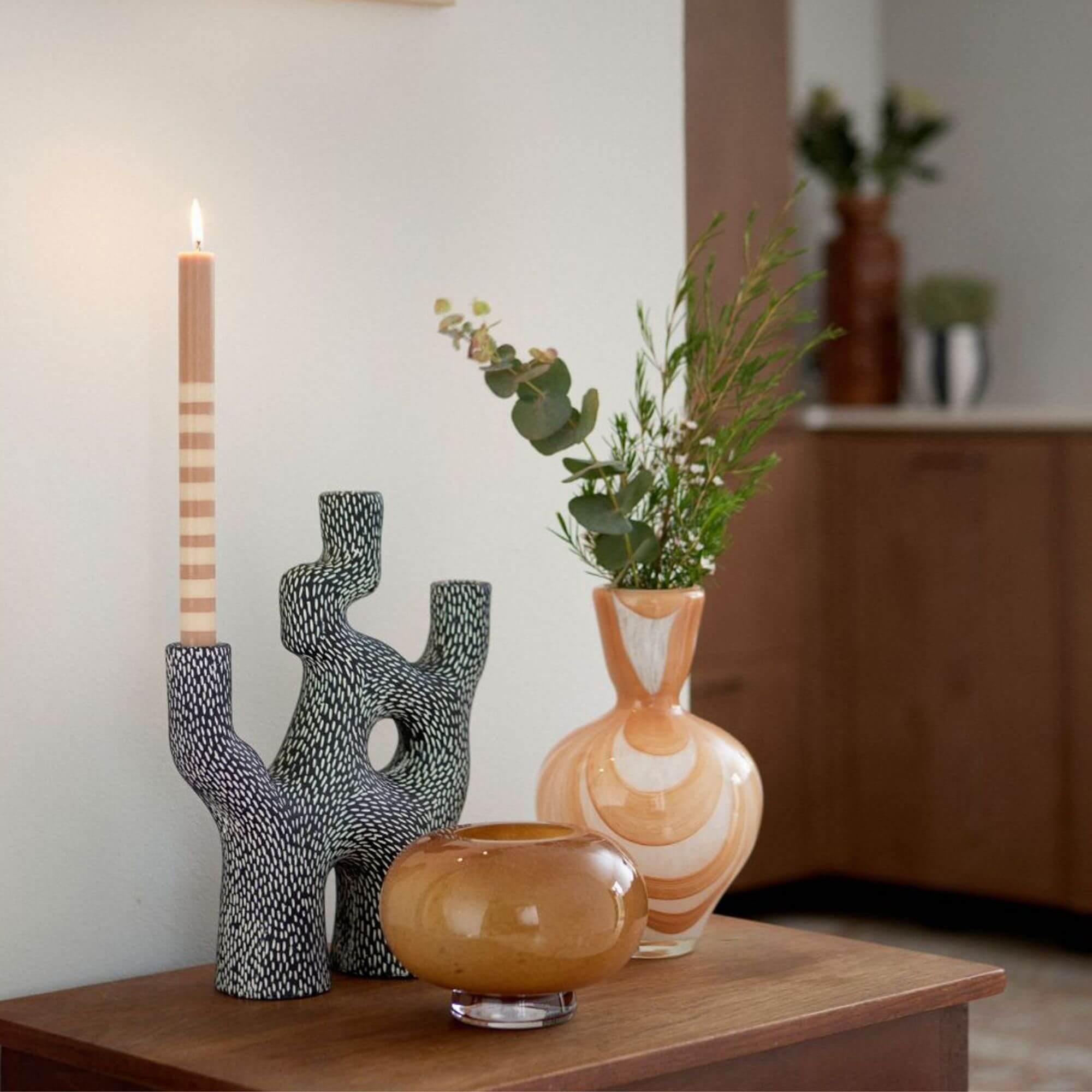 Le vase Heart shape est fabriqué en verre soufflé avec un élégant motif. En raison de la technique utilisée, les couleurs varient, ce qui rend chaque vase unique.