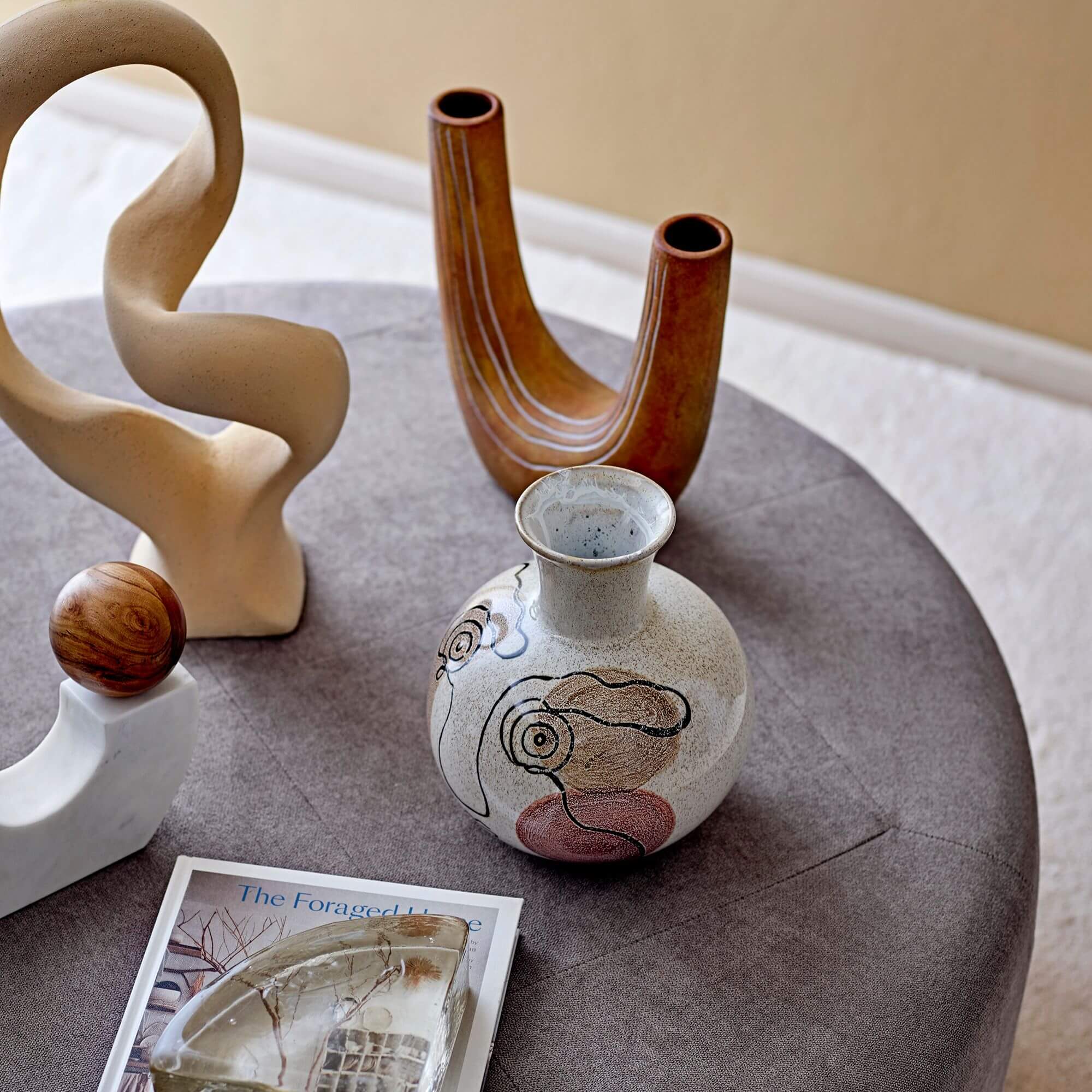 Vase en grès tendance, peint à la main de manière originale. Placez-le seul ou avec d’autres accessoires d’intérieur, pour une décoration impeccable et moderne.