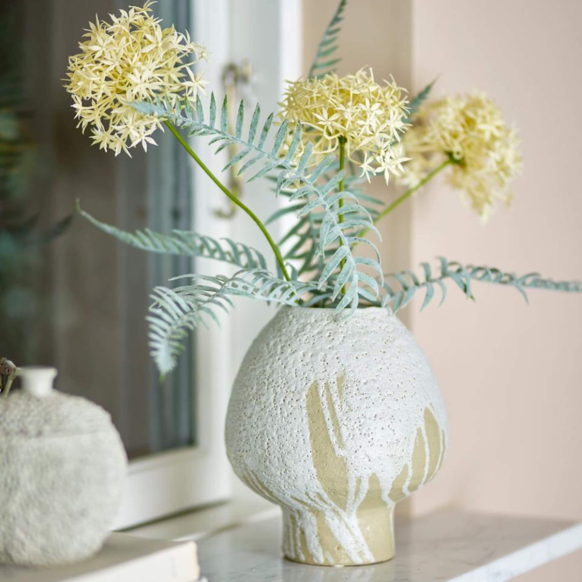Le vase Morag est en grès et arbore une texture pleine de caractère, presque vibrante. Son émail continu crée un effet dynamique qui rend chaque pièce absolument unique — impossible d’en trouver deux qui se ressemblent, même en cherchant très fort. Magnifique tel quel ou accompagné de quelques fleurs, il apporte une touche d’élégance… avec juste ce qu’il faut de “regardez-moi, je suis fabuleux”.