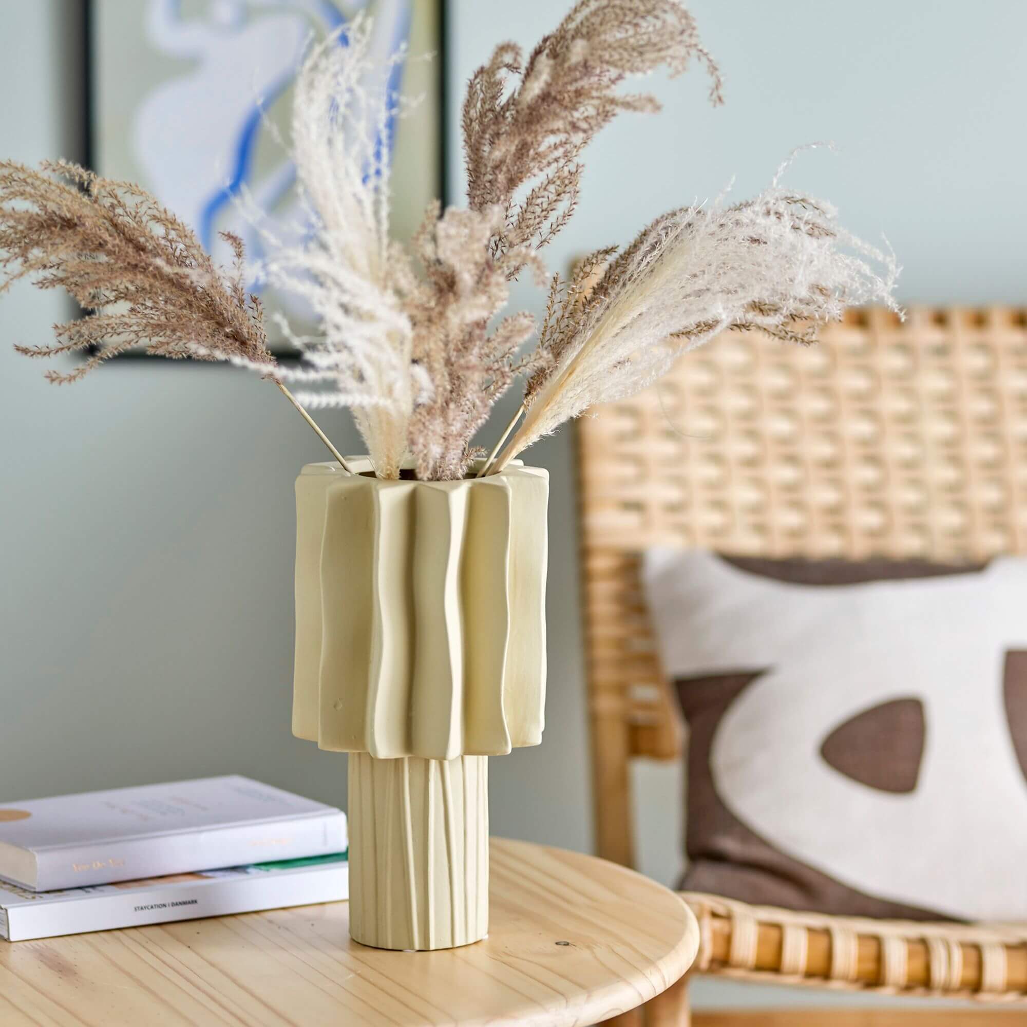 Le Vase Pethrine est une pièce sculpturale et décorative au fini sablé, évoquant l’aspect du sable marin. Ce design unique peut être utilisé comme élément de décoration élégant ou agrémenté de vos fleurs préférées pour ajouter une note naturelle et organique à votre intérieur.