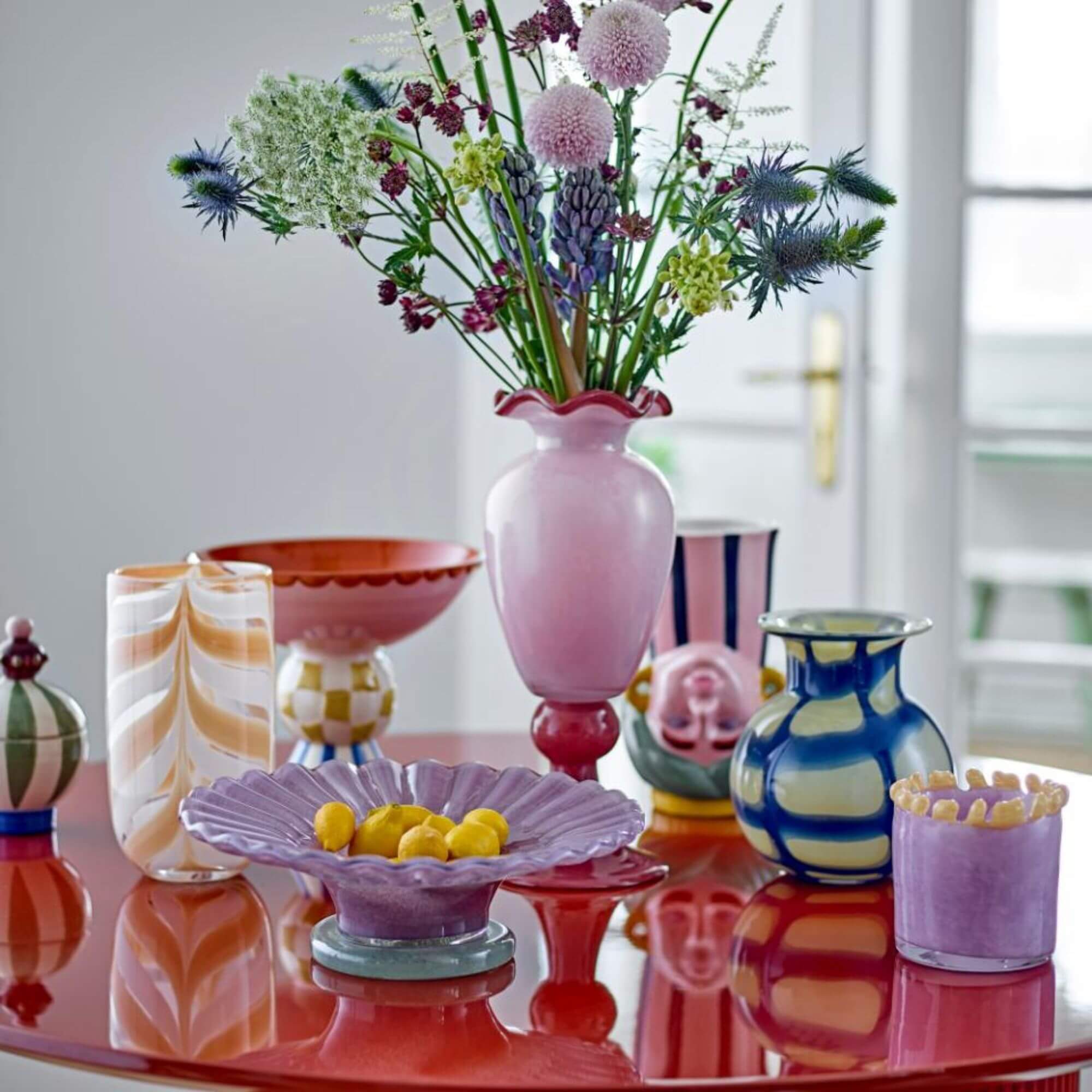 Le vase Taven est réalisé en verre et orné de larges rayures colorées dans des tons orangés et blancs. Avec sa silhouette classique, il accueille volontiers de généreux bouquets — plus ils sont imposants, mieux il se porte ! Sa présence affirmée en fait un vrai rayon de soleil : posé sur la table à manger, le rebord d’une fenêtre ou une étagère, il apporte instantanément une note colorée et pleine de personnalité à votre intérieur.