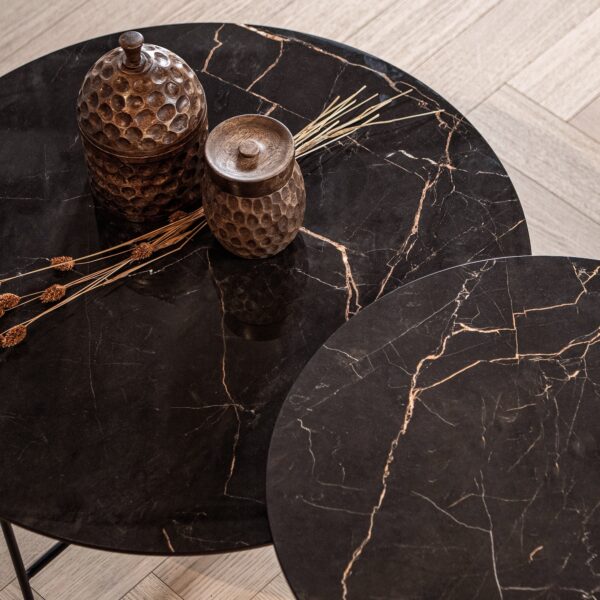 Table basse Holy Ø 80 cm – Marbre/Noyer