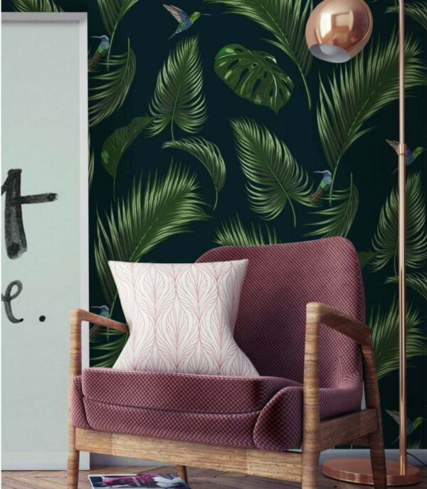 Papier-peint Jungle – Bleu canard foncé – 10 m x 53 cm
