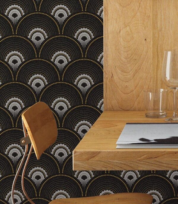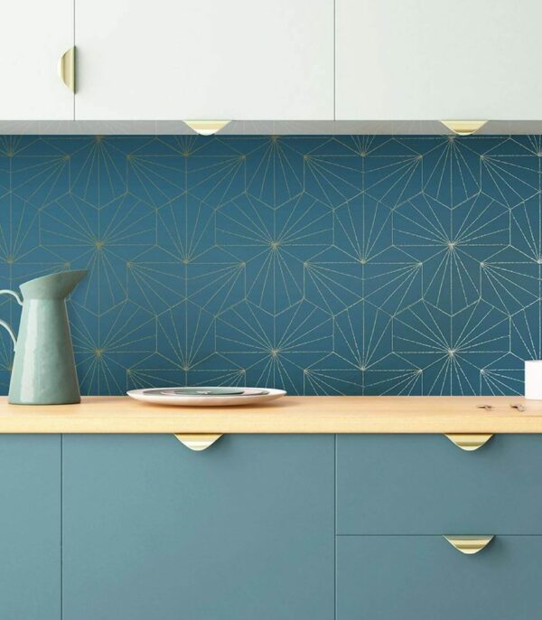 Papier-peint Tiles – Bleu petrol/doré – 10 m x 53 cm