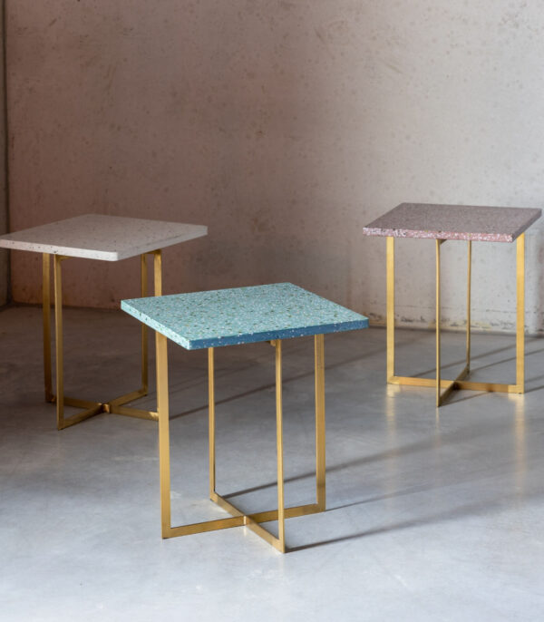Table d’appoint Luigi carré – Terrazzo vert/Laiton